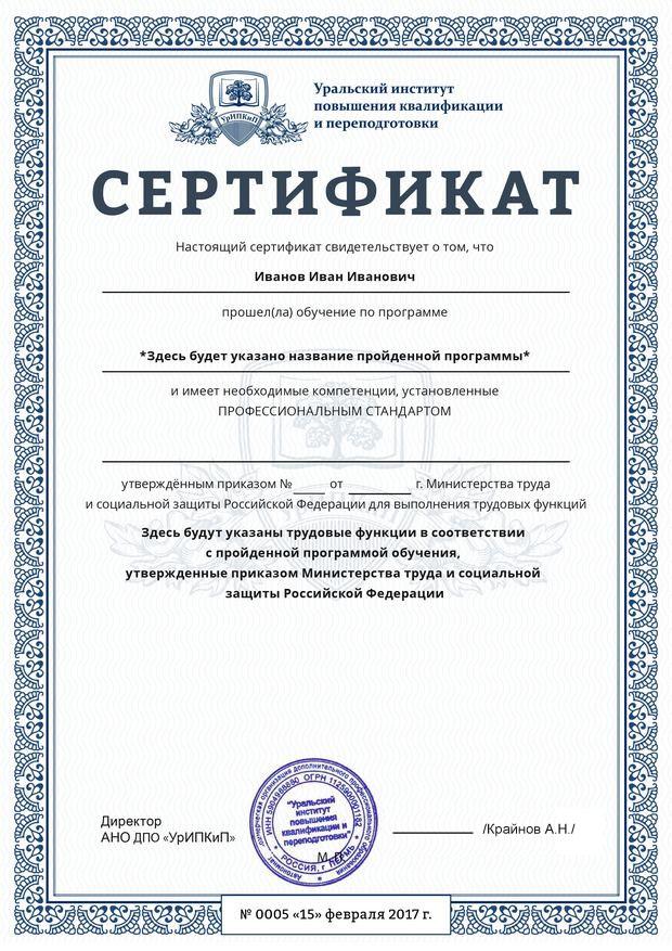 - Документ будет отправлен «Почтой России» в срок до 14 дней с момента успешного окончания курса.