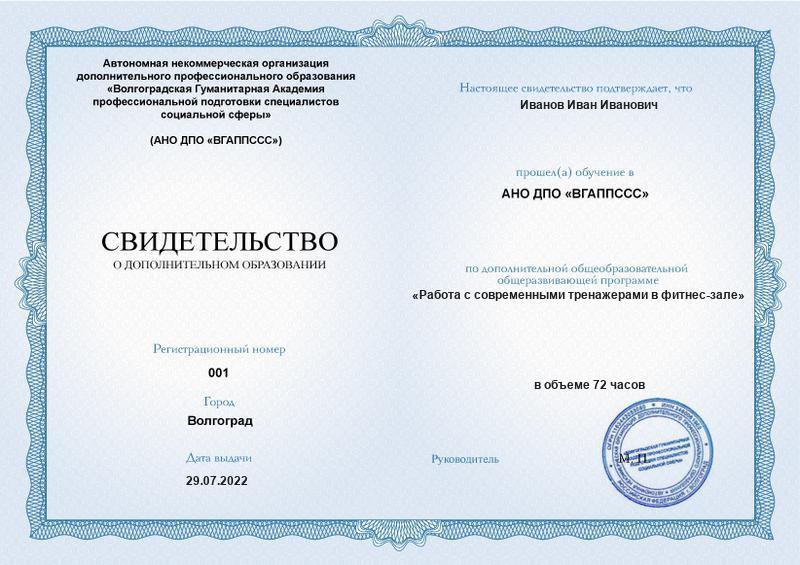 Работа с современными тренажерами в фитнес-зале (72ч)