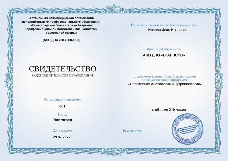 Выдаваемый документ: Свидетельство о дополнительном образовании