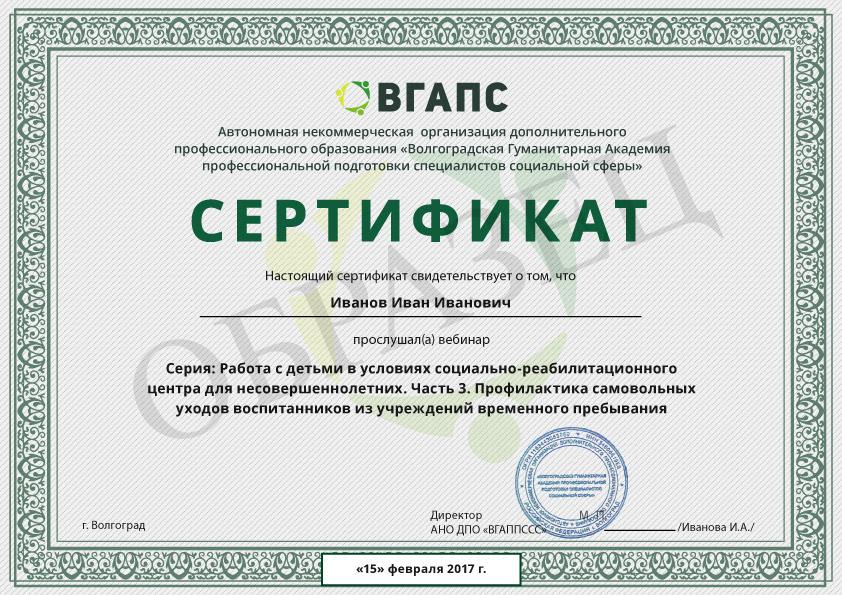 Дополнительно наши Слушатели могут получить сертификат за просмотр вебинаров