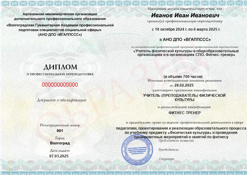 Обучение по такой программе – способ освоить новую профессию на основе ранее полученного образования. В дипломе выпускника указывается его ФИО, наименование учебной организации, название и длительность программы. Документ заверяется подписью руководителя и печатью АНО ДПО «ВГАППССС».